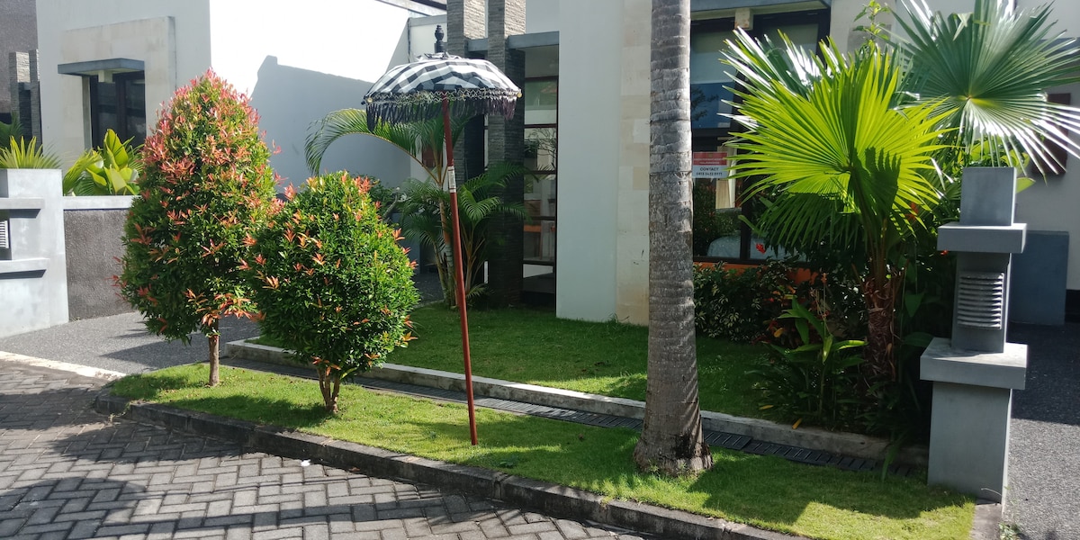 Relájate con toda la familia en este lugar tranquilo para alojarse. La manguera es de 2 dormitorios , 1 dormitorio principal con balcón y hermosa vista al campo de arroz, y 1 cama individual en una habitación separada. Ambos dormitorios incluyen aire acondicionado y aire acondicionado en la sala de estar en la planta baja. No es lugar de fiesta, trata la casa como si fuera tuya. Ubicación en medio de seminyak y Kuta. A poca distancia a pie de alrededor de 10 menute a la tienda. Alrededor de 20 a 30 menute desde el aeropuerto depende del tráfico. hay un dispositivo de seguridad fuera de la propiedad .
