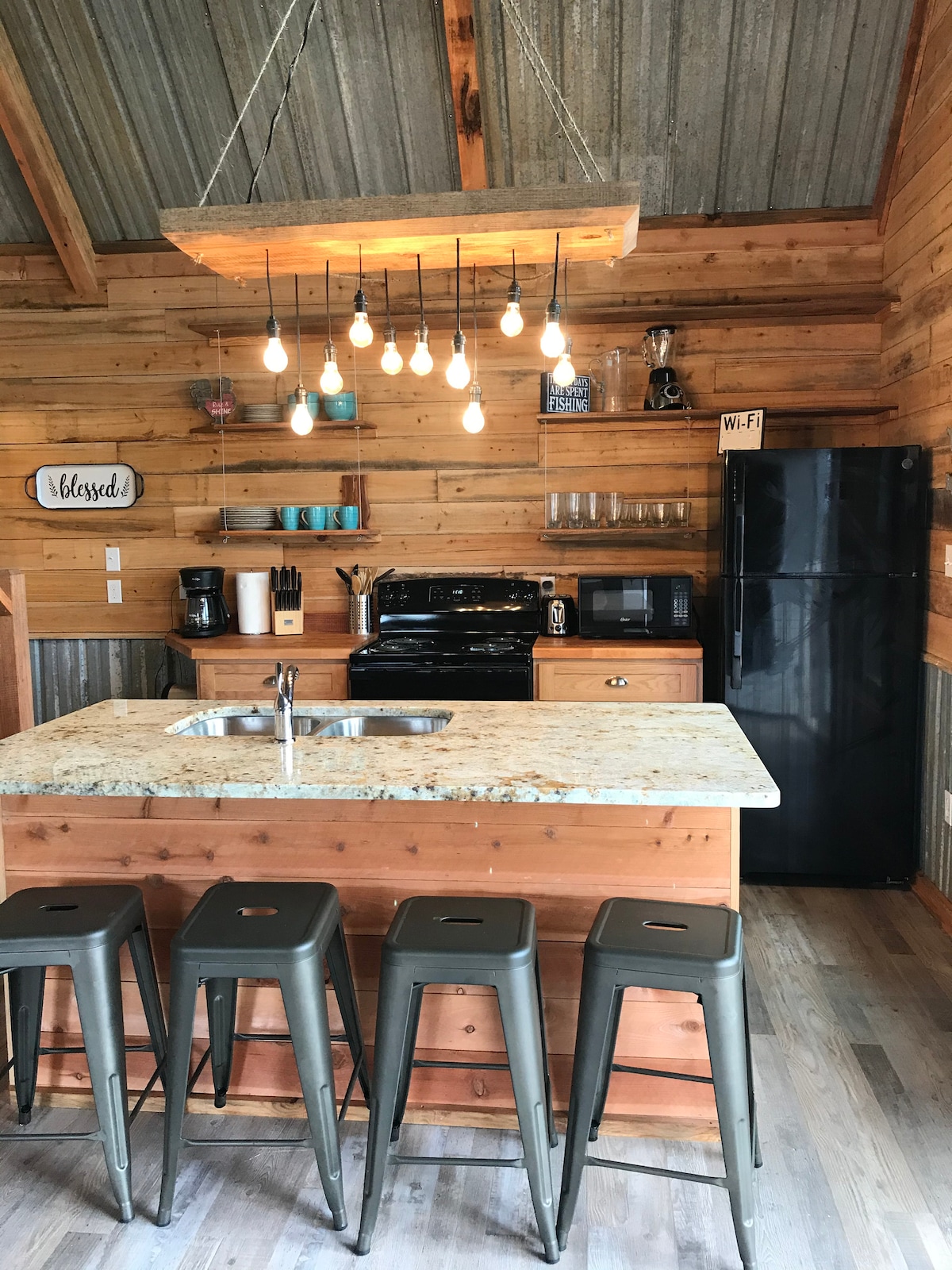 Relájate en esta escapada única y tranquila. Con un dormitorio privado queen, cocina limitada, baño completo y sala de estar, te encantará esta escapada tranquila bajo las estrellas. ¡Sal al porche para ver las vacas o camina hasta el lago y pesca una gran lubina!