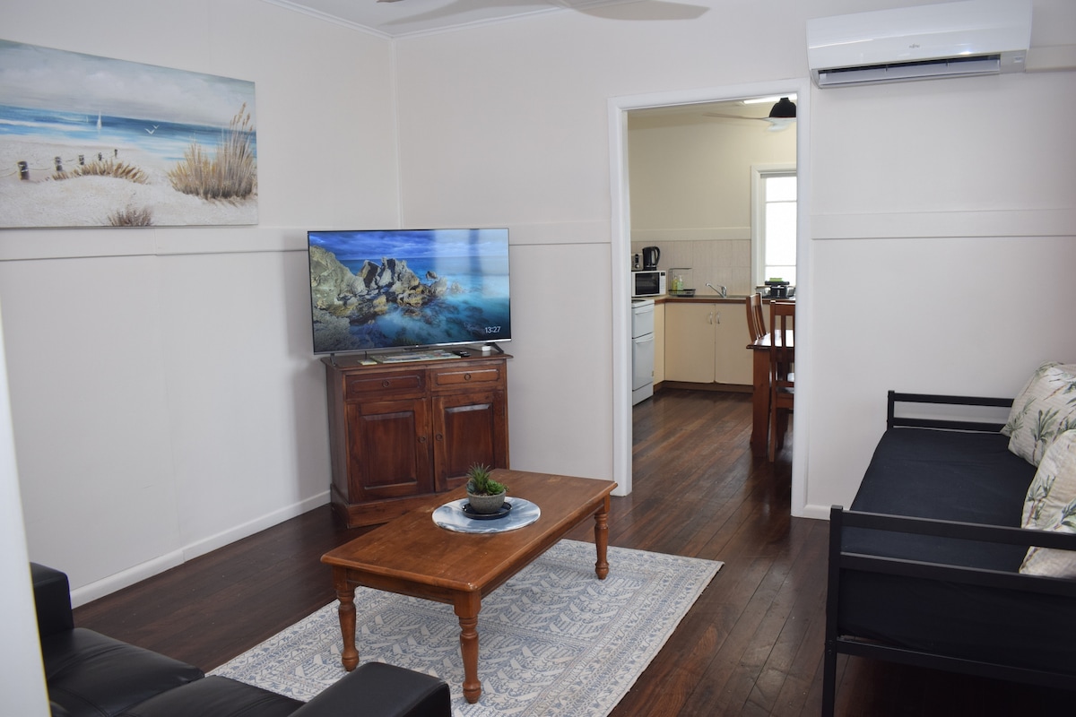 Clásico Queenslander con carácter de ciudad interior. Totalmente amueblado con 2 camas tamaño queen y 2 camas individuales. A 100 metros a pie de la estación central de tren de Cairns. A poca distancia a pie de la ciudad, el puerto, restaurantes y tiendas. Cocina totalmente equipada. Jardín tropical con cactus y suculentas. Kevin vive abajo en una unidad separada. La lavandería está abajo y se comparte con Kevin, pero está disponible y accesible en todo momento.
