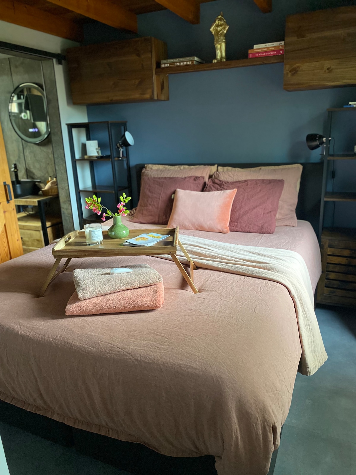 Welkom in ons oude boerenhuis, waarvan een gedeelte van de voormalige stal omgetoverd is tot een sfeervolle B&B. Bijzonder ingericht met veel kunst aan de muur en een goedgevulde boekenkast. U heeft een eigen ingang met gezellige woonkamer, slaapkamer en eigen douche/toilet. Er is televisie, met Netflix en You Tube. EEN UITGEBREID ONTBIJT IS INBEGREPEN. Het b en b bevindt zich separaat en afgesloten van het hoofdgebouw. Eigen ingang, eigen slaapkamer en eigen badkamer. Er is één b en b ruimte.
