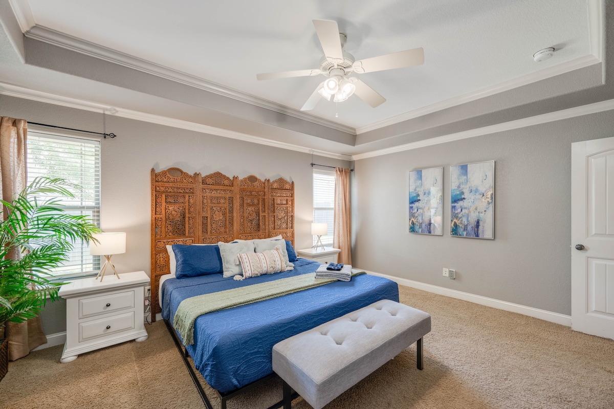 ¡Recientemente reformado, espacioso y luminoso! Esta casa familiar se encuentra a 3 millas del campus y en la ruta de autobús 34 (FISH CAMP). ¡Todos los muebles y colchones son nuevos! Perfecta para familias con servicios para niños (literas, ping pong, baloncesto, silla alta, parque infantil, etc.) Gran patio trasero con patio y parrilla. Gran aparcamiento y garaje. A pocos minutos de la tienda de comestibles H-E-B, preciosos parques familiares y senderos para bicicletas, una gran selección de restaurantes y Santa's Wonderland. **Política estricta de no mascotas**