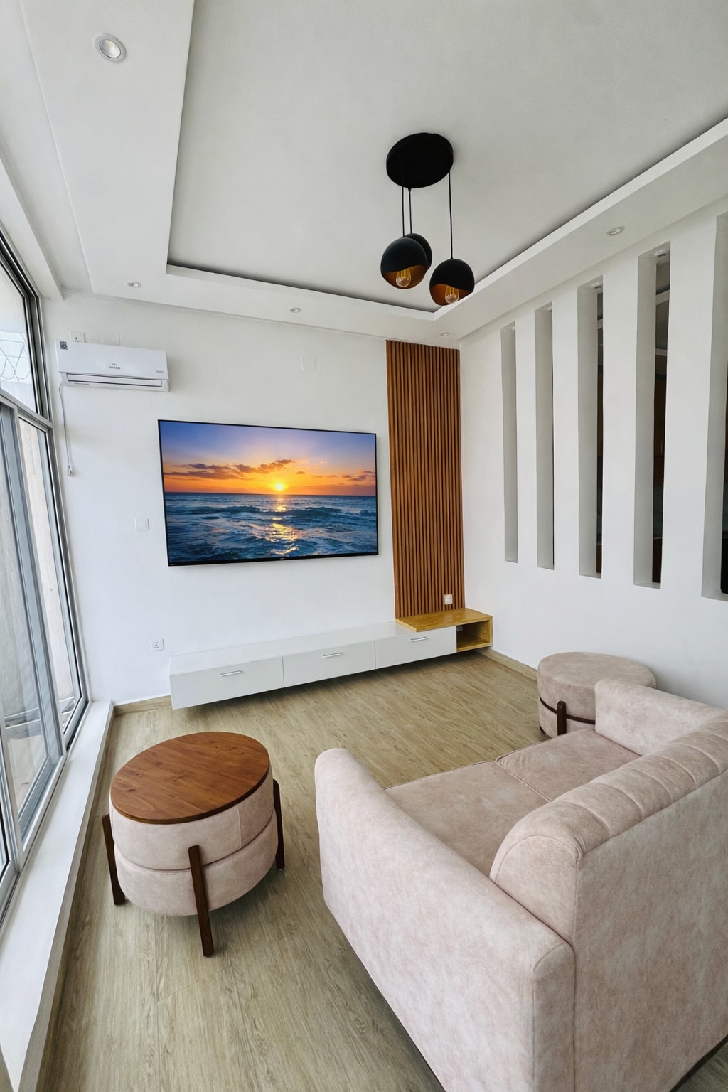 Departamento de 2 dormitorios con sala de estar de concepto abierto