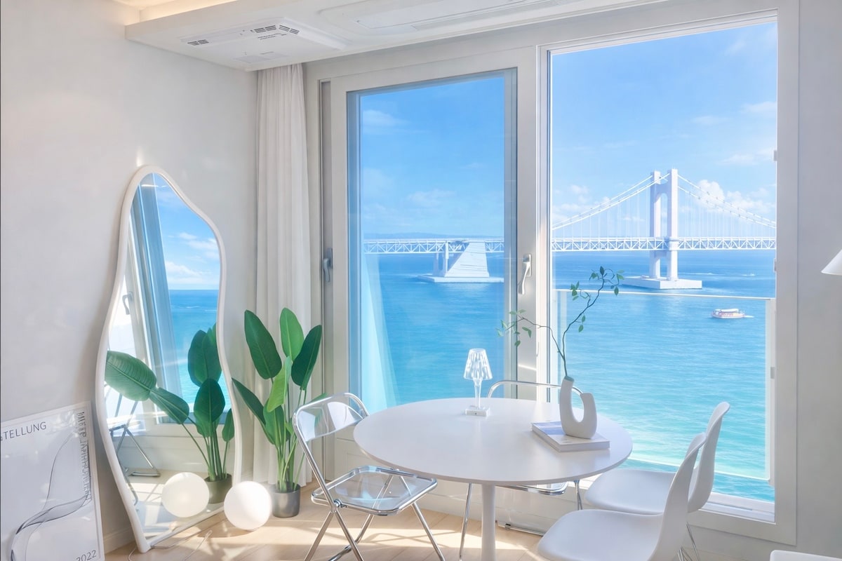 #. Inaugurado en octubre de 2024 (parcialmente renovado en junio de 2025) Vista panorámica al mar con vista frontal de todo el puente♣ Gwangan Estacionamiento gratuito con♣ acceso gratuito (estacionamiento subterráneo conectado al ascensor) Check-in sin contacto♣ con teclado (p. m.: 3:00 p. m.) ♣ Almacenamiento de equipaje antes del check-in (disponibilidad y tiempo requerido por adelantado) ♣ El anfitrión administra las condiciones de la habitación y responde al cliente Playa ◈ Gwangalli y ciudad de Minrakhoe: 3 minutos a pie Mercado ◈ de Milraker: a 1 minuto a pie. Mercado de◈ Minnak Alley - 7 minutos a pie ◈ BEXCO & Cinema Center & Shinsegae Department Store Centum City Branch - 7 minutos en auto Playa de◈ Haeundae a 15 minutos en auto Estación de◈ Gwangan (metro) - 15 minutos a pie, 3 minutos en coche Garaje de◈ Minnak-dong (autobús urbano) - 7 minutos a pie #. Esta es una guía para coreanos legales de acuerdo con la Ley Especial de Manifestación de Alojamiento Compartido. Bori House está registrada y operada como una empresa legal de alojamiento compartido doméstico bajo el caso especial de Mister Mansion.
