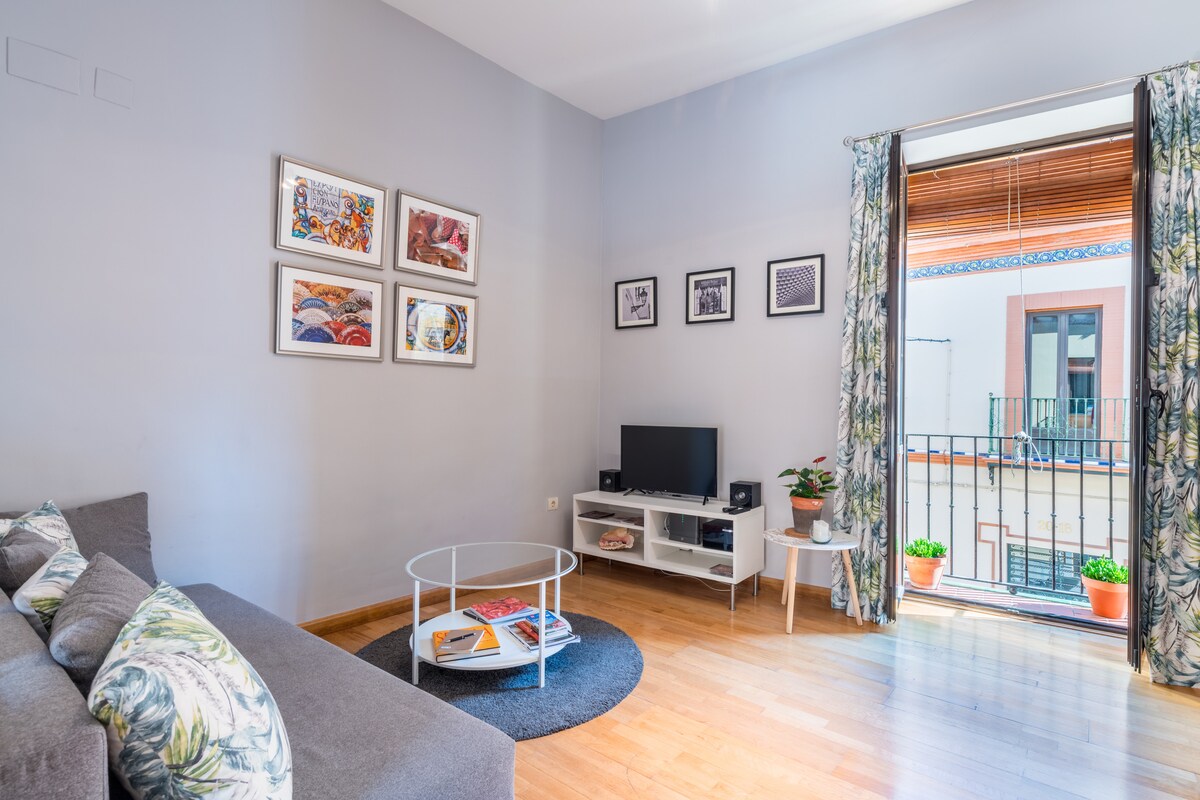 Apartamento con entrada independiente en edificio histórico de principios de SXX. Recién reformado con calidades de primera y mobiliario que lo hace único y diferente. Suelo de madera de roble y obras de artistas locales. Barrio de San Julián , centro histórico pero fuera del bullicio turístico para conocer la auténtica Sevilla local. Rodeada de iglesias y conventos en una calle muy tranquila pero a 5 minutos de la Alameda y calle Feria, donde están los bares y zona más animada.