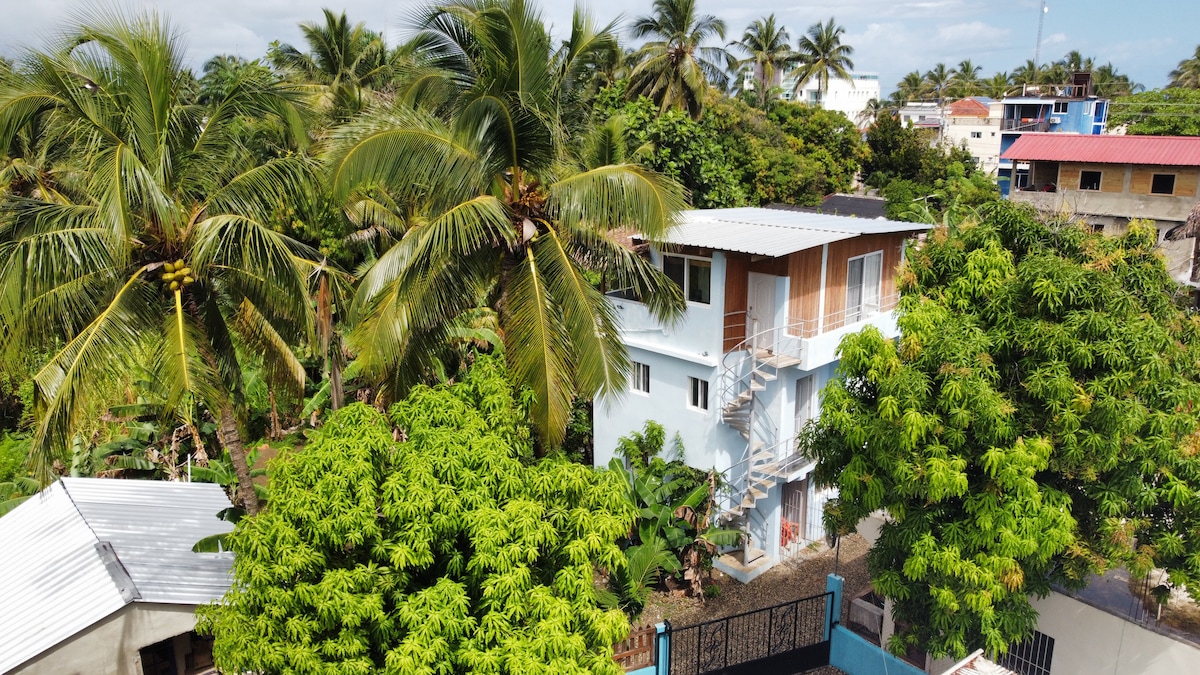 En el centro de Cabarete y a solo 2 minutos a pie de la playa. Te ofrecemos un pequeño loft sencillo y cómodo con salón/comedor/cocina y entresuelo con cama y escritorio. Perfecto para gente que le gustan los deportes acuáticos o trabajar a distancia, para solteros o parejas.