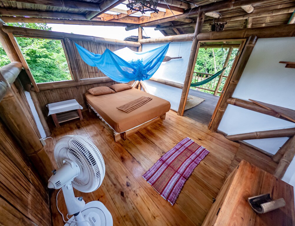 Take in nature in this special space. A bamboo octagon cabaña with a 1 minute walk to a private beach. Cook your own food on a spectacular deck with views of a lagoon or go to the beach side restaurant for a meal watching the waves. Reciprocal bamboo thatch roof allows you relax and feel at peace. Ecologically friendly design can put you at easy knowing you are having a low impact on the environment. Get away from the typical tourist experience and find yourself in the bosque seco.