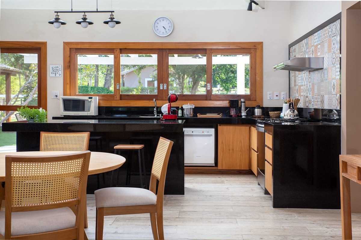 Casa con influencia de las villas balinesas, rústica pero extremadamente acogedora y refinada, con todo de la más alta calidad, muebles, electrodomésticos, cama y baños. Área Gourmet Dreams con parrillas de gas y carbón, horno de leña, placa de cocción y ahumador. Spa con 1400 litros de agua caliente, una sauna de piedra Hijau con vistas panorámicas del bosque. 5 pantallas enormes, 2 de ellas de 75". Equipamentos Elettromec, Kitchen Aid, Le Creuset. Internet 500 Mb. ¡Paraíso para los amantes de la comida!