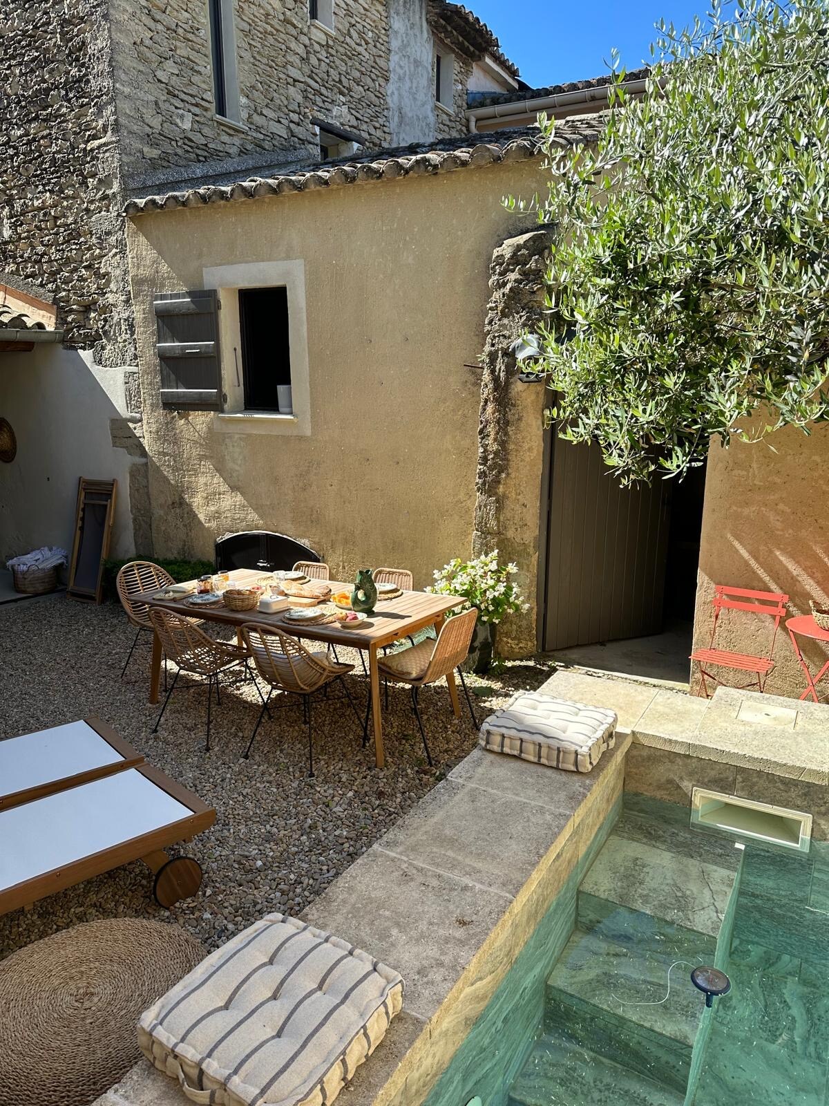 En Goult, una casa de pueblo orgánica privatizada, diseñada por un anticuario-arquitecto. Un lugar vivo, que mezcla materiales, piezas antiguas y encanto auténtico. Acceso a la piscina de 12 m y al jardín del propietario, compartidos con otros cinco alojamientos tranquilos. Una experiencia íntima en el corazón del pueblo. El estacionamiento público gratuito está a un minuto, justo enfrente del café Le Goultois.