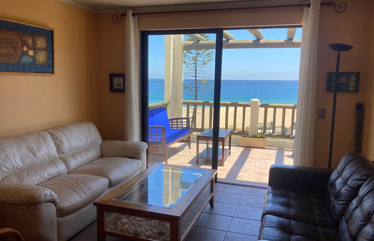 Si deseas despertar mirando el mar y no ocupar el auto hasta tu regreso, éste es el lugar perfecto! Acogedora casa con orientación norte , vista al mar incluyendo Isla Seca, a 500 metros del centro , en tercera línea frente al MAR , a 1 cuadra de plaza Mar Bravo y a 300mt de restaurant Chiringuito y Caleta y a 500mt del pueblo Revisa y aprovecha las PROMOCIONES para 4 personas, paga adicional por persona a partir de 5. WIFI, 2 Estacionamientos exclusivos PROHIBIDO FUMAR! NO se aceptan MASCOTAS!