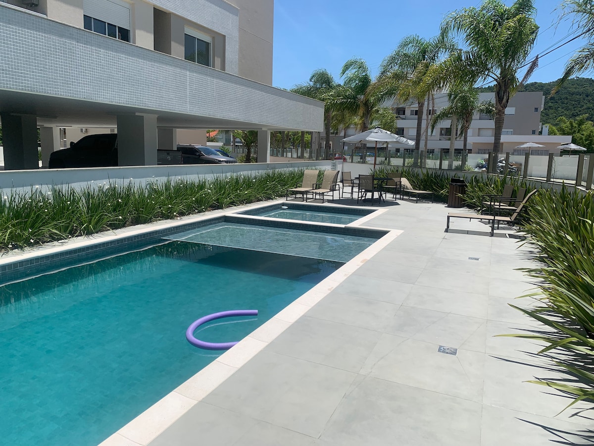 Estudio exclusivo de 40 m² con otra gran terraza privada de 20 m², equipada con jacuzzi y parrilla. Ubicado en el Primer Condominio, en SC-401, junto a Passeio Primavera, una de las regiones más deseadas y prácticas de la ciudad. El condominio completo con piscina y gimnasio. Nuevo apartamento, con acabados de alta gama, amueblado y decorado con sofisticación, combinando comodidad, funcionalidad y diseño contemporáneo, perfecto para estancias cortas y largas. Cochera incluida