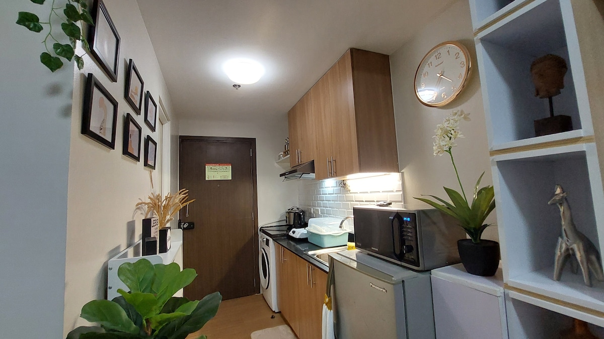 Este alojamiento único tiene personalidad propia. Creado para que disfrutes de un ambiente natural donde se combinan elegancia y comodidad. + Tenemos Netflix y Amazon Alexa para tu entretenimiento. + Podemos emitir recibos BIR para empresas. + Hay lavadora secadora disponible dentro de la unidad. + Registro de llegada autónomo con código seguro a través de nuestra cerradura inteligente automatizada. + El balcón ofrece una hermosa vista del atardecer y de la ciudad. + A poca distancia a pie del centro comercial Limketkai y con fácil acceso a The Coffee Project al otro lado de la calle.