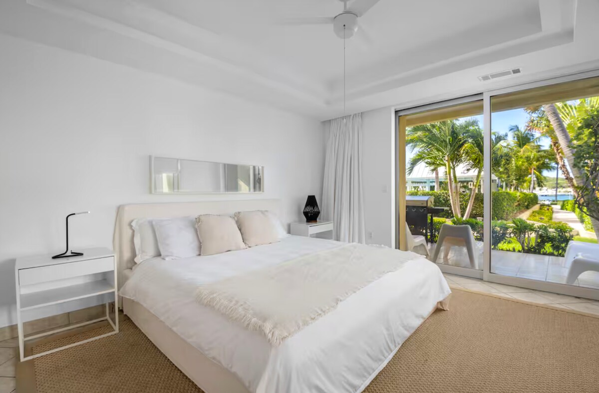 Este fabuloso apartamento ático se encuentra dentro de la exclusiva Turtle Tail Marina y junto a la casa del difunto cantante Prince. Este apartamento de 3 dormitorios grandes con baño recién construido ofrece preciosas vistas al mar y al puerto deportivo desde todas las habitaciones y balcones. La zona de barbacoa al aire libre tiene vistas al mar y al lago Flamingo, donde puedes socializar, relajarte y ver algún que otro flamenco rosa. Hay una gran piscina con tumbonas y una hamaca para relajarse. Hay kayaks disponibles para explorar los pequeños cayos y la playa.