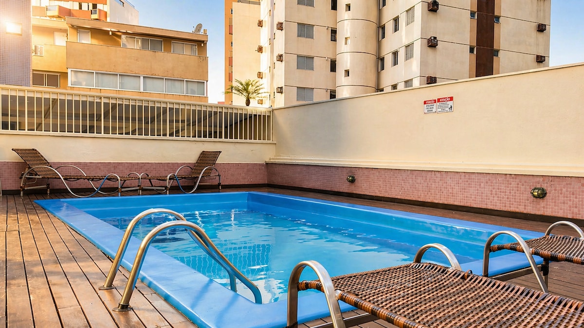 Apartamento em Caiobá a 200 metros da praia, no Ed. Cygnus em Caiobá, ideal para famílias e casais. Acomoda até 6 hóspedes, com melhor experiência para 4 pessoas. Possui 1 suíte com cama de casal, TV e ar-condicionado, 1 quarto com 2 camas de solteiro, sala de estar com Smart TV, Wi-Fi, cozinha equipada, área de jantar, sacada com churrasqueira e vista para as montanhas, piscina no condomínio e 1 vaga de garagem coberta. Perfeito para dias de descanso perto do mar.