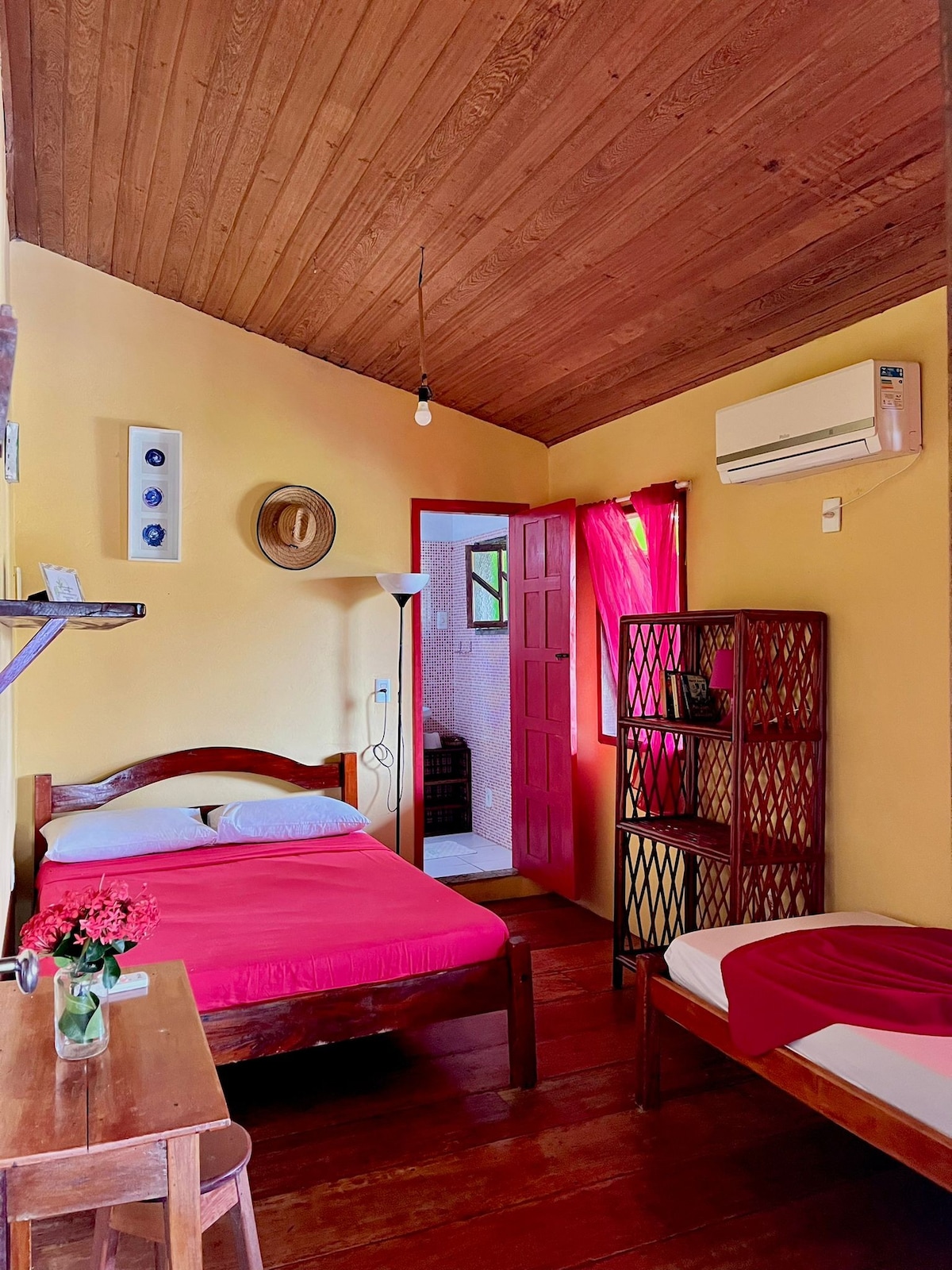 Beautiful and private ensuite bedroom, in the heart of Velha Boipeba. Everything’s been designed with a perfect mix of natural materials to create a space that feels both rustic and modern, offering all the comforts you need for a relaxing stay. With its own staircase and separate access to the ground floor, giving you total privacy and independence, the room features a queen-size bed, en-suite bathroom with walk-in shower, and plenty of space for your toiletries and clothes.