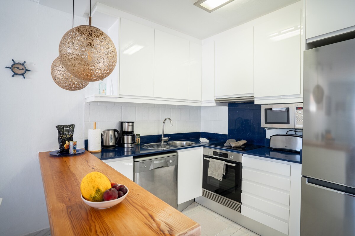 Disfruta de vistas de Menorca y de las playas del sur de arena blanca y agua azul turquesa. Apartamento situado en un complejo de 8 viviendas para una estancia tranquila, con accesos directo al mar. Situado en un barrio residencial alejado del bullicio y dispone de servicios como tiendas y restaurantes, y servicio de auto-bus para Ciutadella.