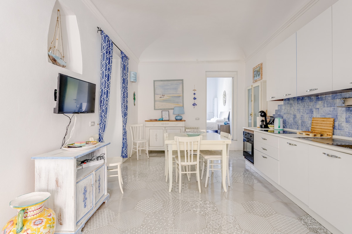Hermoso apartamento finamente amueblado, a poca distancia a pie de la playa del pueblo. Ubicado en la segunda planta, está separado por dos habitaciones independientes con un pasillo compartido. Sala de estar, cocina y porche, todo con vistas al mar. Subiendo una cómoda escalera de caracol, puedes acceder al dormitorio principal con baño y a una gran terraza con impresionantes vistas. Todas las habitaciones están equipadas con aire acondicionado y wifi. Bares, restaurantes, heladerías, tiendas de conveniencia y farmacias se encuentran en las inmediaciones.