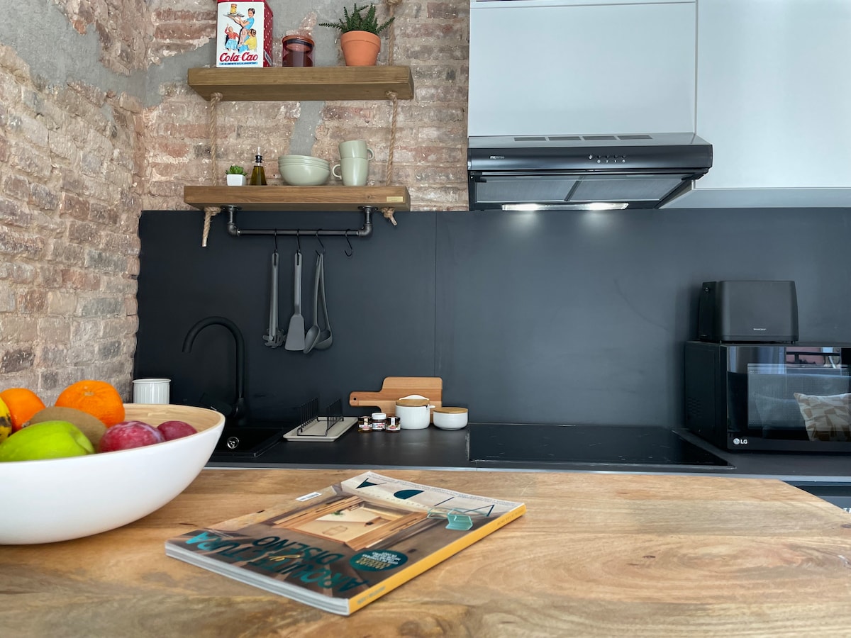 Apartamento dúplex tipo Loft para 2/4 personas en el centro de Cornudella de Montsant. Dispone de: 1 habitación abierta, 1 baño, y un comedor-cocina con un cómodo sofá-cama. En la zona comunitaria hay una terraza desde donde disfrutar de las vistas al Montsant y también observar Cornudella desde las alturas. Tiene conexión WIFI de alta velocidad, Smart TV, cafetera de cápsulas y está totalmente equipado. Proveemos las sábanas y las toallas. No te lo pierdas, es muy elegante y estiloso.