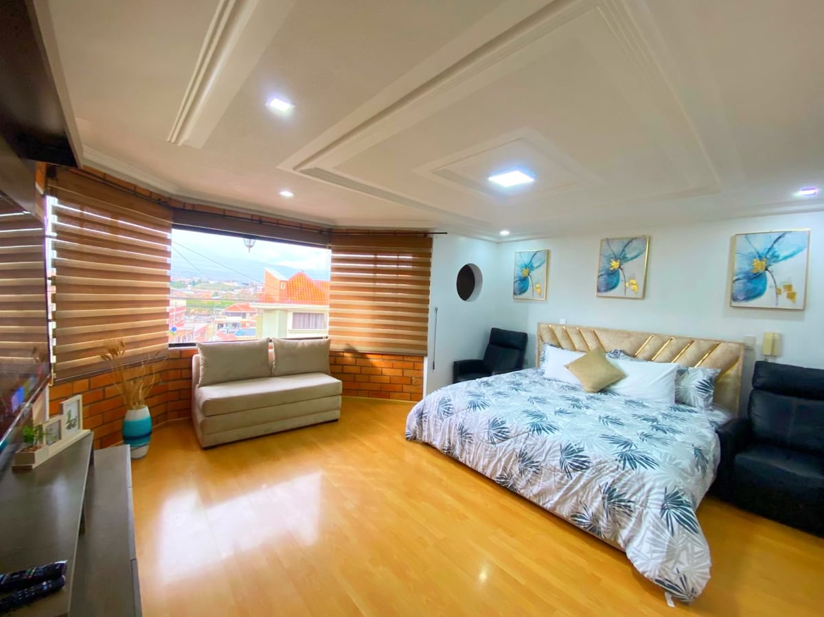 Con excelentes vistas de la Ciudad esta vivienda es lo suficientemente amplia como para que toda tu familia puedan estar juntos, compartir y recordar todas aquellas anécdotas vividas Estamos en una zona tranquila y dentro de una ciudadela a tan solo 7.5 km del Parque Calderon en carro hará unos 15 minutos de acuerdo al tráfico. Disponemos de 4 habitaciones, una en planta baja. Cuenta con todo lo necesario para disfrutar su estadía. El IVA está incluido no pague más, reciba su factura.