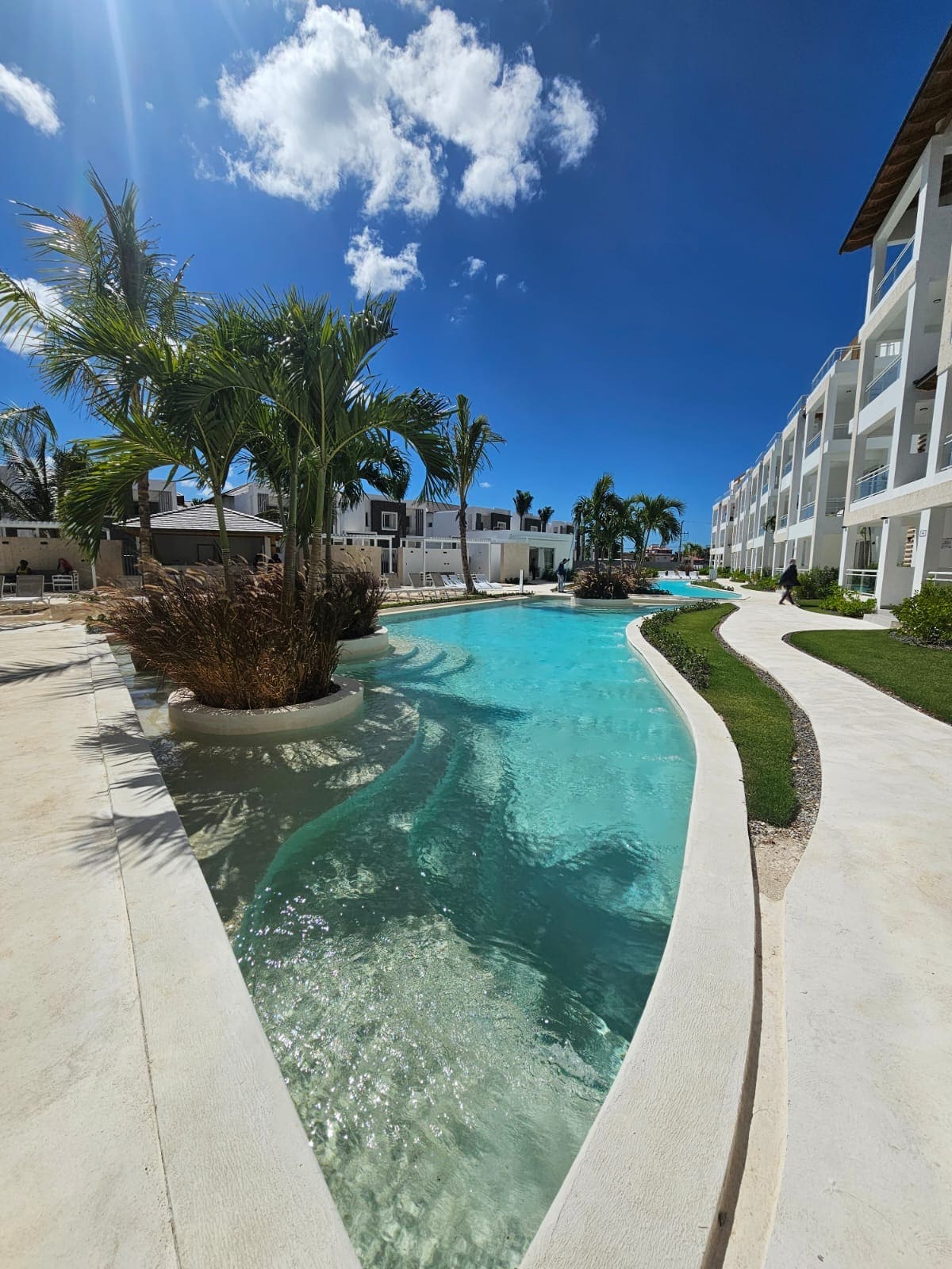 🌴 Apartamento en Dominicus (Bayahibe) – a solo 350 m de la playa 🏖️ Ubicado en la segura y tranquila finca Estrella Dominicus, cerca de restaurantes y tiendas. 🏠 Apartamento con aire acondicionado con: • una sala de estar y una cocina pequeña 🍳 • dormitorio separado 🛏️ • baño 🚿 • terraza con vista a la piscina 🌊 🏊♂️ 5 piscinas al aire libre disponibles Wifi 📶 rápido: perfecto para el trabajo a distancia ⚡ Electricidad incluida en el precio: una rareza en la República Dominicana ✔️