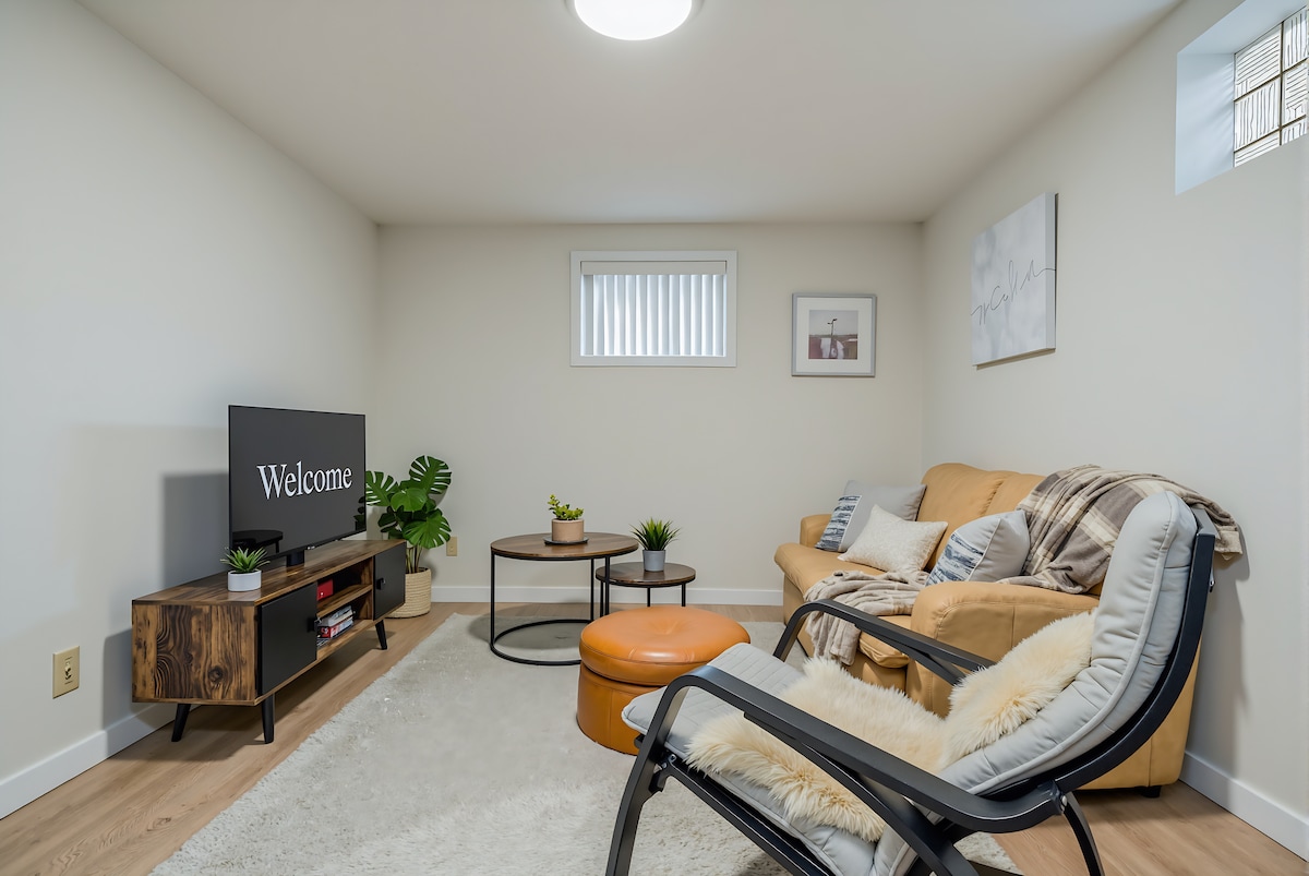 Moderno sótano renovado con salida independiente y jacuzzi nuevo.