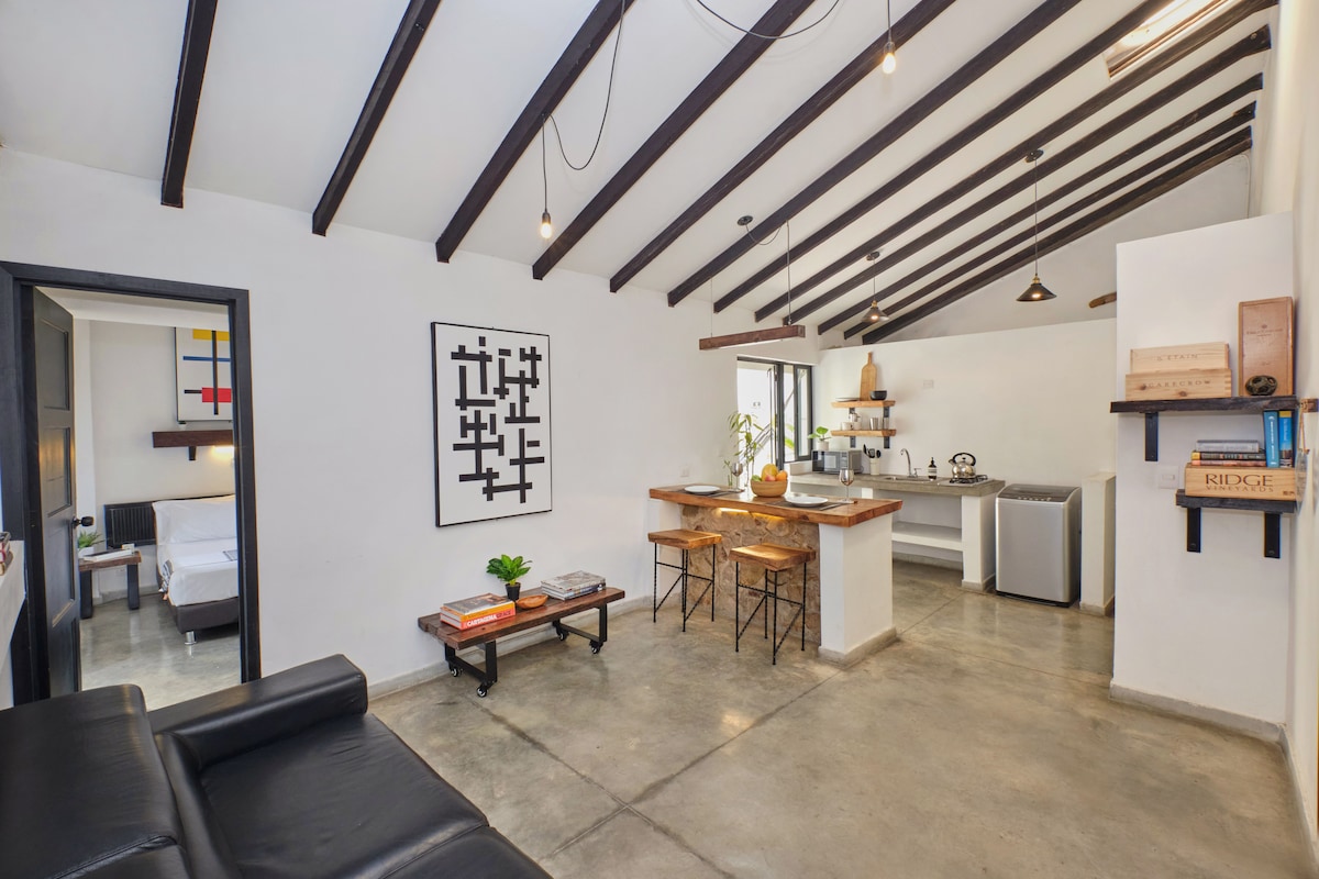 🌴 APARTAMENTO EXSTR • Villa del Peñón 203 Esta unidad de un dormitorio y un baño con jacuzzi y balcón es la combinación perfecta para viajeros solitarios, parejas o nómadas digitales. Todas las pestañas tienen agua caliente, el dormitorio tiene aire acondicionado, TV inteligente y una cama tamaño queen. Todas las comodidades están en su lugar y diseñadas pensando en tu comodidad. El vecindario de El Peñón es una zona muy transitable con muchos restaurantes y entretenimiento en cuestión de minutos. El Colonial San Antonio está a solo 3 cuadras de distancia.