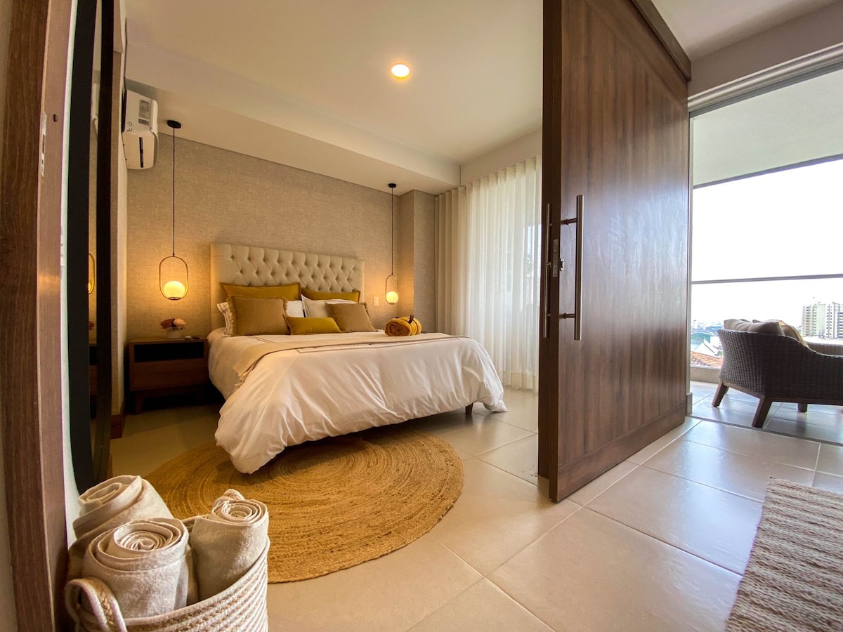 Loft moderno/Vista/A-C/Piscina /PQ gratis