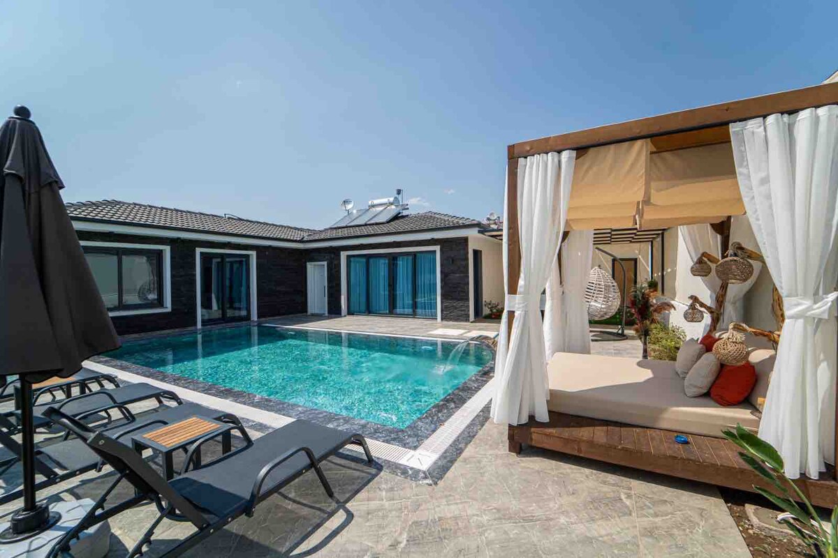 Fethiye Ölüdeniz'de Yeni Ultra Lüks "La Marbella Villa" Spectacular modern luxury villa, newly built, in a privileged enclave of Fethiye, in the heart of the lush green Hisaronu and overlooking the breathtaking Babadag mountain. La Marbella Villa is a nod to the beautiful homes in Southern Spain and is an indulgence in luxury. We have designed our villa with the most high-end and luxurious amenities for all to feel the most comfortable and have the holiday of your dreams.