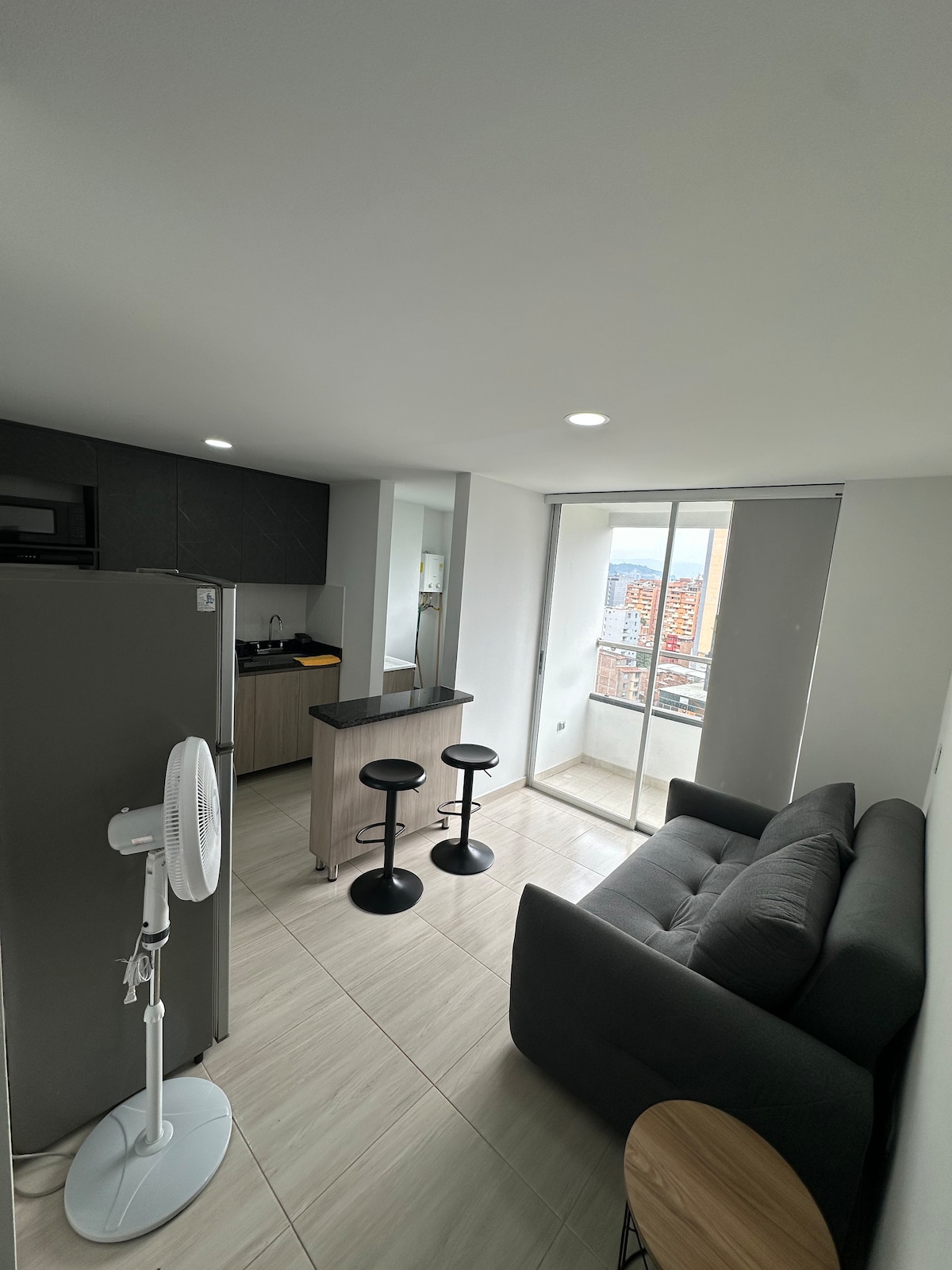 Este moderno y acogedor apartamento de un solo ambiente es el lugar ideal para tu próxima estadía. Ubicado en un piso alto, es un espacio único y confortable, con todo lo que necesitas a tu alcance; transporte publico, centros comerciales, restaurantes, mercados, farmacias. Nuestra oferta de parqueadero en las instalaciones esta sujeto a disponibilidad, sin embargo en la zona hay parqueaderos públicos con precios justos. Cuenta con una cama doble, cocina dotada, baño y zona de trabajo.