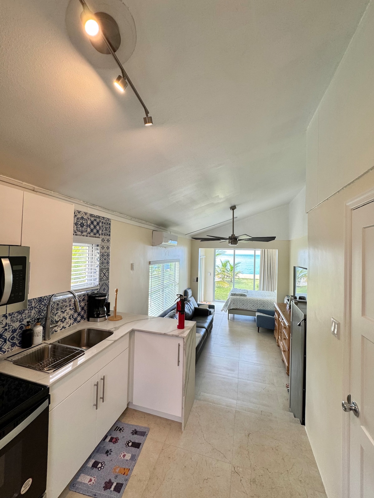 Este adorable apartamento tipo estudio ha sido completamente renovado y tiene todo lo necesario para disfrutar de la escapada caribeña perfecta. Calypso Cove está justo enfrente de la famosa playa Seven Mile Beach, donde podrás nadar en el mar azul cristalino todos los días. El estudio tiene un balcón para que puedas disfrutar de la puesta de sol o de un café por la mañana. A poca distancia a pie de un supermercado, restaurantes, banco y farmacia, este apartamento está en la ubicación perfecta. Cafetera Keurig, tumbonas, aletas, máscara y sombrilla de playa.