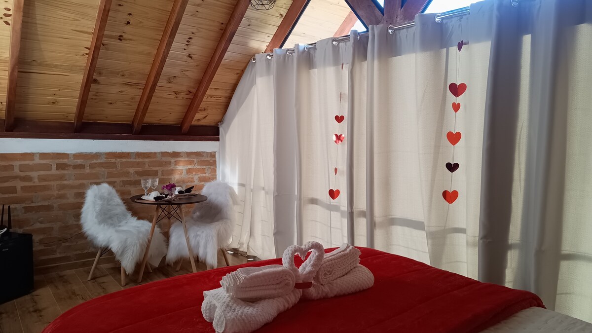 Un chalé muy encantador y romántico. Ubicación privilegiada donde la naturaleza encuentra silencio y tranquilidad. (1500 m de la avenida principal - sugerencia de un agradable paseo.) El chalet fue diseñado con el objetivo de proporcionar una experiencia única en Monte Verde. Venga a disfrutar de este encanto. ¡Será un placer recibirles!