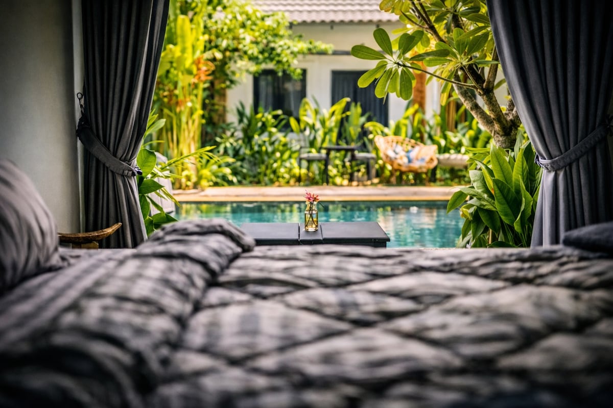 Loki’s House is a private one-bedroom guesthouse set within a lush, nature-filled property in a quiet village just outside Siem Reap, only 3 km from Angkor Wat. The standalone house offers air conditioning, Wi-Fi, a cozy living area with TV and streaming, and a tropical-style enclosed open-air bathroom. Guests can have accesss to our kitchen and dining area, relax on the garden patio, and enjoy easy access to bicycles, tuk-tuks, and nearby attractions.