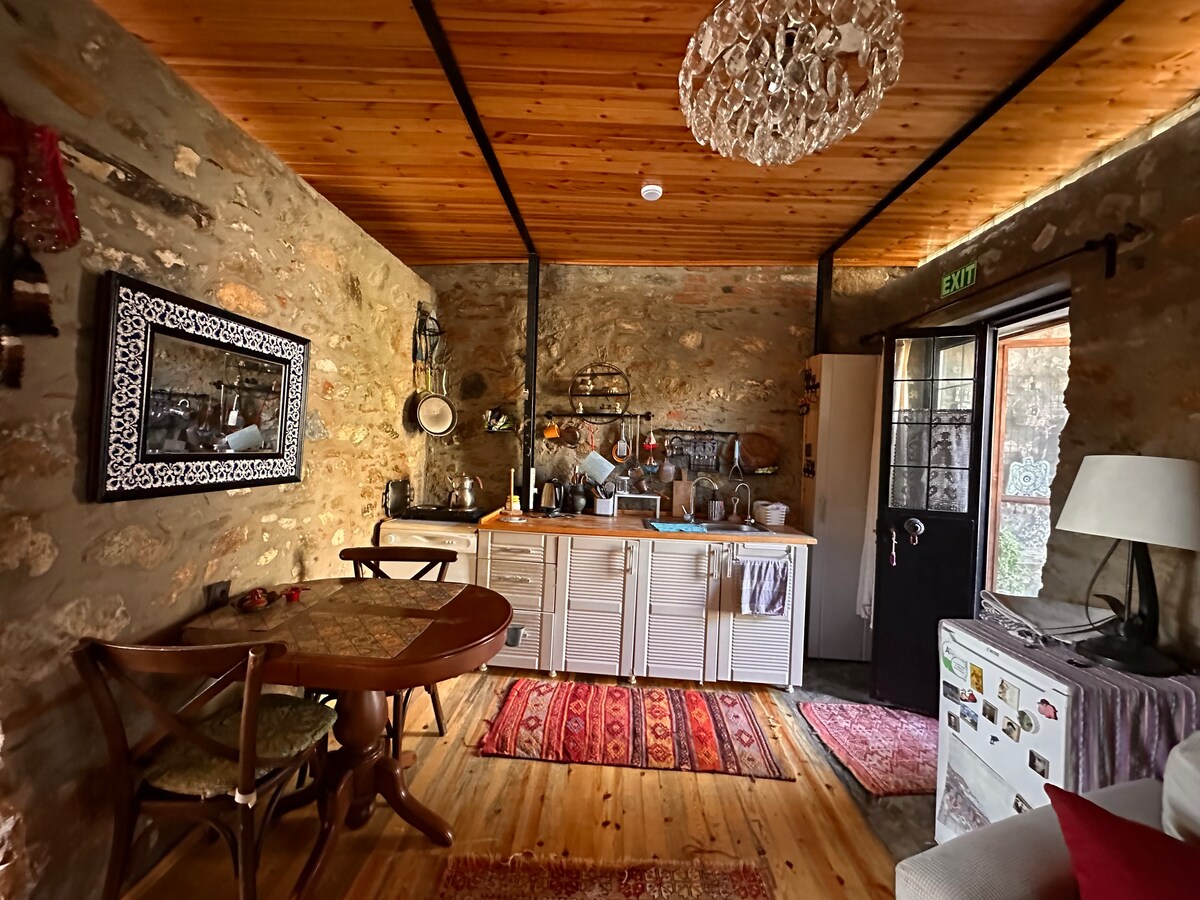 Una casa de dos pisos y 200 años de edad. Hay una sala de estar de piedra en la planta baja. 2 dormitorios dobles y un dormitorio individual se encuentran en el segundo piso junto con el baño y el pasillo. La casa está mirando al famoso pueblo de Şirince desde un tophill y, sin embargo, todos los servicios del pueblo están a poca distancia a pie. Entrar en la casa a través de un jardín. También puedes disfrutar de la serenidad de nuestro jardín y beneficiar nuestras bebidas caseras que servimos en nuestra cafetería.