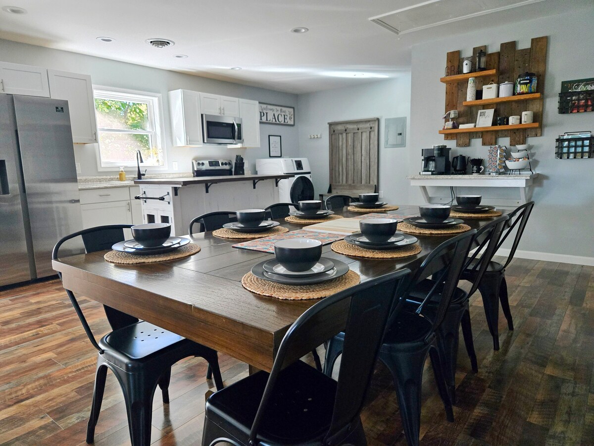 Disfruta de esta casa de huéspedes privada de 2 dormitorios con camas tamaño queen, llegada autónoma y ambiente apto para cachorros. Ofrece un desayuno continental ligero al entrar en la cocina totalmente equipada. Una acogedora sala de estar con TV Roku y chimenea eléctrica, WIFI, baño completo, espacio de trabajo dedicado y lavadora y secadora. Pack n Play y trona también disponibles. Patio trasero privado con mesa y sillas, barbacoa, chimenea y piscina privada en el suelo. ¡Perrera para perros y pozo de herradura para divertirse de forma competitiva!