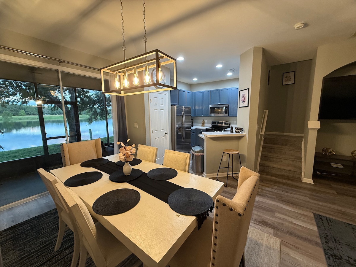 Un hogar encantador a solo 10-20 millas de Disney World, SeaWorld y Universal Studios, propiedad de Kim y Shawn Beus. Barrio tranquilo con senderos para caminar/correr. Está a solo 10 minutos de muchos restaurantes, tiendas de comestibles, tiendas y opciones de entretenimiento como Medieval Times, Fun Spot America y Give Kids the World. Relájate en la piscina privada (climatizada por un cargo adicional) y en el patio, así como en el patio, y observa cómo juegan los pájaros en el estanque.
