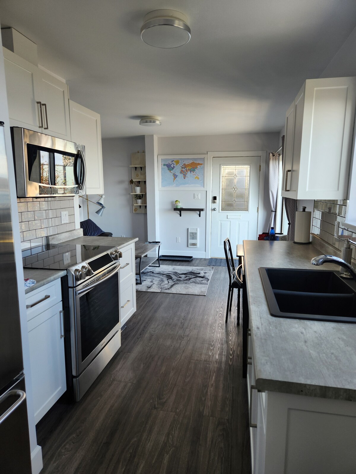¡Hola! Suite recién construida, luminosa, amueblada y diseñada de forma moderna, de 1 dormitorio y 700 pies cuadrados con vista al mar en el hermoso río Campbell. Reserva aquí para disfrutar de los lujos que se encuentran en los mejores resorts con total privacidad. Disfruta de la ducha de efecto lluvia con calefacción por suelo radiante. Relájate junto a la chimenea de gas viendo Netflix. ¿Quieres salir a explorar? Esta ubicación fácil está a pocos minutos a pie del paseo marítimo, el hospital, el museo Campbell River, la piscina pública al aire libre y frente a un parque.