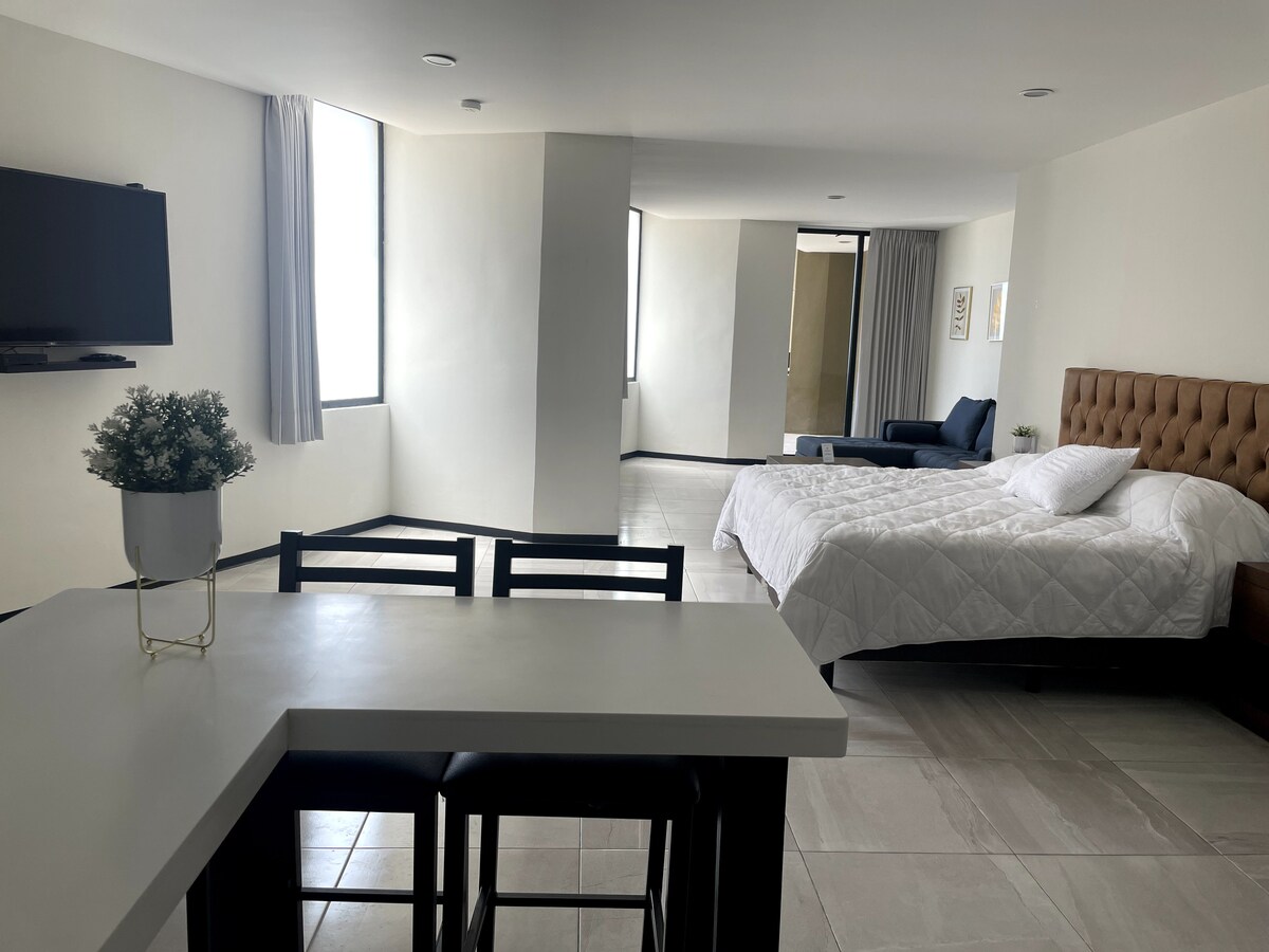 El departamento lo acondicionamos a nuestro entero gusto. Está bien iluminado, los espacios son cómodos y pueden servir de recepción para visitantes en plan de turistas; o bien, en plan de trabajo. Otro detalle extra es que el departamento está en una tranquila zona, cuenta con estacionamiento y en auto es posible llegar al centro histórico hasta en cinco minutos; además que, por su ubicación, la calle desemboca en tres de las principales avenidas de la ciudad.