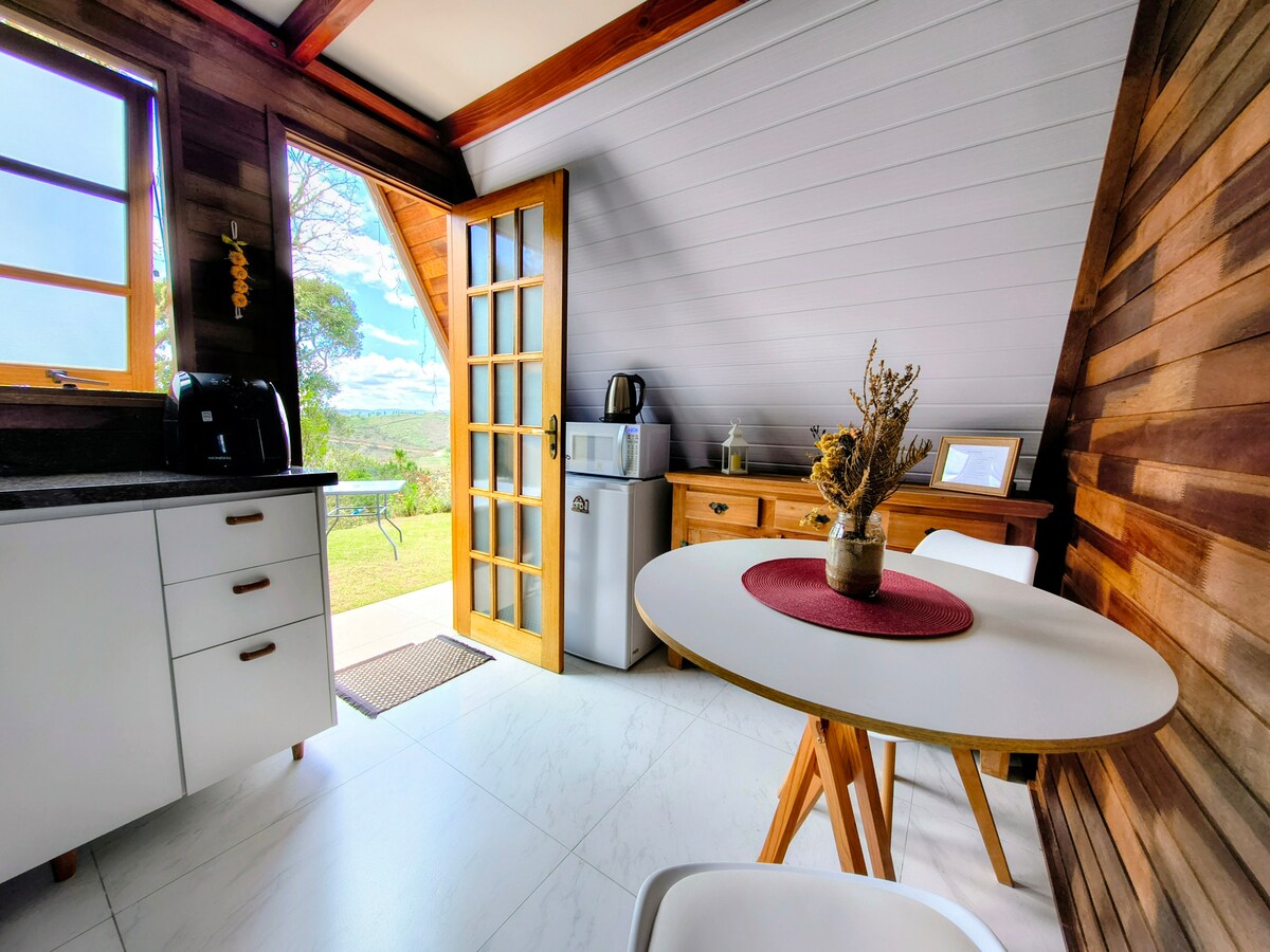Imagine relaxar em uma jacuzzi ao ar livre enquanto o sol nasce sobre as montanhas de Campos do Jordão. Nosso chalé romântico foi pensado para quem quer desacelerar, apreciar uma vista panorâmica incrível e viver momentos especiais a dois. Com rede voltada para o vale, espreguiçadeiras no jardim e um ambiente acolhedor em estilo alpino, aqui você encontra o cenário perfeito para descansar, celebrar ou simplesmente aproveitar o silêncio da montanha. Obs. Cesta com Kit de café da manhã opcional.