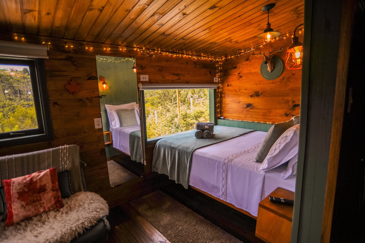 Chalé moderno no estilo Tiny House a cerca de 1 ,8 Km do centro de Capivari. Com piso aquecido no banheiro com hidromassagem, é ideal para quem procura romance nas montanhas. Cortinas blackout nos 2 andares para maior privacidade e conforto. (CASO NÃO ENCONTRE A DATA QUE PROCURA, PESQUISE TAMBÉM POR CABANA DA PAZ 1, 2, 3, 4, 5 e 6, CELEIRO DA PAZ, THERMAS DA PAZ, ou CHALÉ DA PAZ 1 e 2 no meu perfil).