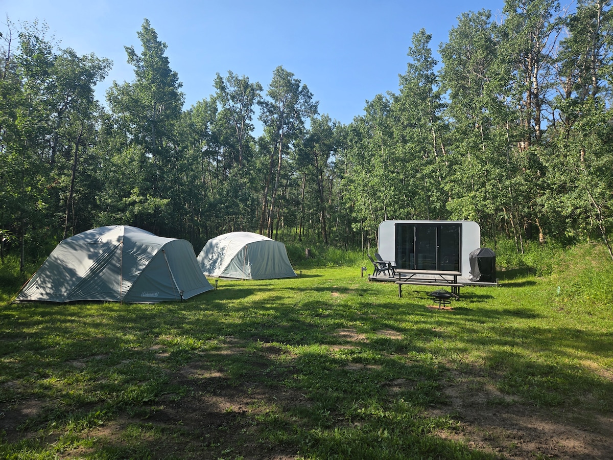 Disfruta de una escapada romántica única en Water Valley, Alberta. A menos de una hora en coche de Calgary, nuestra encantadora tienda se encuentra en una pintoresca propiedad de 40 acres con un tranquilo lago. En el interior, encontrarás una acogedora cama tamaño king con calefacción para la máxima comodidad. Disfruta de la cocina al aire libre con la barbacoa y reúnete alrededor de la mesa de fuego bajo el cielo estrellado. Sumérgete en la naturaleza, relájate y crea recuerdos inolvidables en nuestro pintoresco sitio de glamping. ¡Reserva tu escapada romántica hoy mismo!