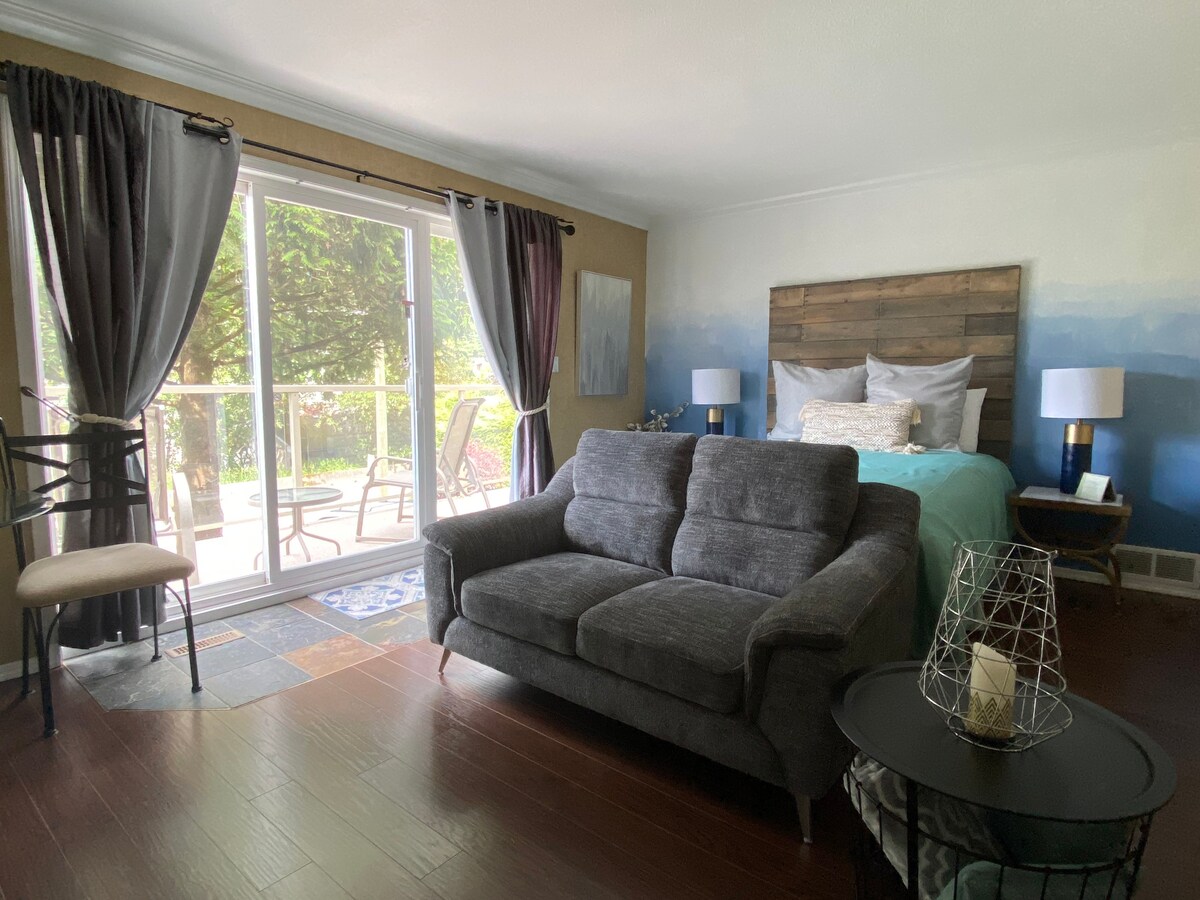 - dormitorio privado, baño, sala de estar, entrada y terraza - La sala de estar tiene una nevera pequeña, tostadora, microondas, cafetera expreso, hervidor de agua, platos y un comedor. - Se proporcionan suministros para el desayuno (café, té, cereales). - Cama tamaño queen Endy + sofá cama y cuna plegable. Las sábanas son de lino o algodón orgánico de empresas canadienses. - Aparcamiento en el lugar, fuera de la calle. - Wifi. - Chimenea eléctrica. - Se permite fumar en la terraza exterior privada. - A 10 minutos a pie del centro de la ciudad, del parque Lakeside y de las tiendas de comestibles.