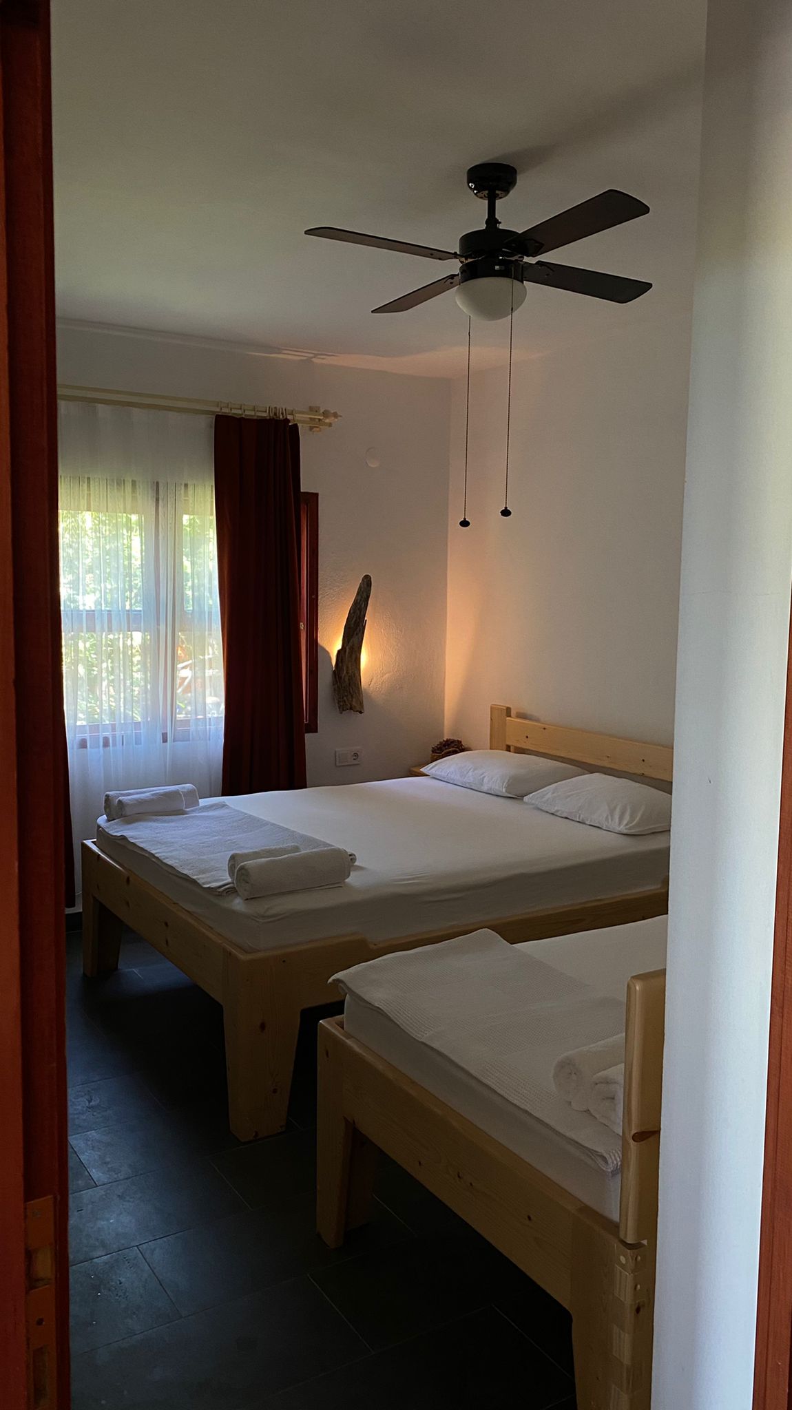 Esta habitación de nuestro hotel boutique tiene una cama doble y una cama individual, y podemos agregar dos camas adicionales si lo deseas. La habitación tiene su propio baño e inodoro.