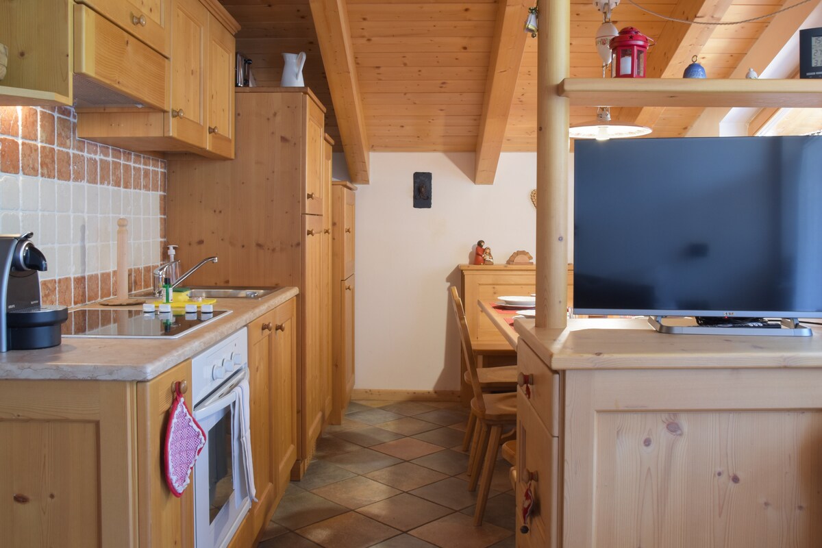 Ático recién reformado. Espacio abierto en madera natural coronado por once grandes ventanas en el techo. Sentado cómodamente en el sofá se pueden admirar los bosques, las rocas y las estrellas. El ático ha sido completamente renovado con materiales preciosos y equipado con muchos dispositivos inteligentes. El apartamento está ubicado en una zona residencial tranquila, soleada y panorámica en el corazón de Val di Fassa, cerca del bosque, a 3 km de la principal zona comercial y de los remontes de esquí de Sellaronda. CIN: IT022113C2RUCHO5AY.