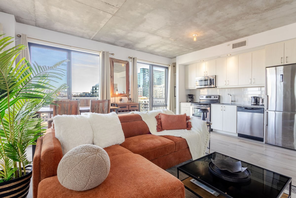 ¡Disfruta de tu estancia en el centro de la ciudad! ¡Nuevo TDC 2 de lujo en el centro con acceso directo al Bell Center! ¡Disfruta de la comodidad de nuestro apartamento de un dormitorio totalmente amueblado y equipado con balcón privado propio! Tu estancia incluye acceso a sauna, piscina, gimnasio, salón panorámico, sala de juegos, salón y terraza con múltiples barbacoas. Aparcamiento subterráneo gratuito, con el metro a pocos minutos. Sin salir, la ciudad es tuya para explorar. Además, relájate con Netflix de cortesía para disfrutar de una estancia perfecta.