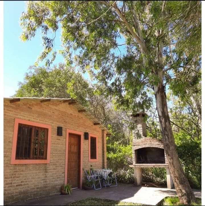 Pequeña cabaña de madera-barro y techo vivo, fresca en verano y cálida en invierno. Tiene dormitorio con aire acondicionado, baño en suite y cocina con estar, inmerso en un hermoso jardín en el bosque. El lugar es RÚSTICO y SENCILLO para quienes busquen desconectarse y disfrutar de la naturaleza. Ofrecemos más que un alojamiento, una experiencia de encuentro, un refugio para recargar energías. Forma parte de Espacio Alaluz lugar que integra actividades terapéuticas y artísticas.