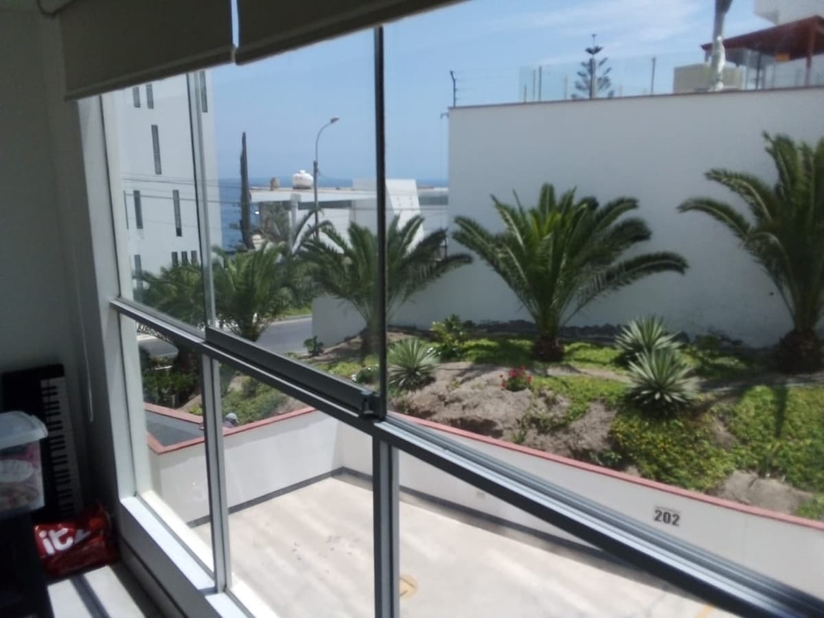 Miniapartamento tipo loft , con vista al mar. Perfecto para pasar unos dias inolvidables en pareja. Cuenta con cama king, mueble cama, tv smart, wifi, cocina a gas, menaje, sala, mini comedor, baño con terma agua caliente, lavadora. Además, podrás aprovechar unas noches fabulosas escuchando el sonido del mar y disfrutando de una hermosa vista. La playa es pequeña, casi privada. La piscina es un area común de la casa, habilitada de 10 am a 6pm. NO BRINDO TOALLAS NI ARTICULOS DE ASEO PERSONAL.