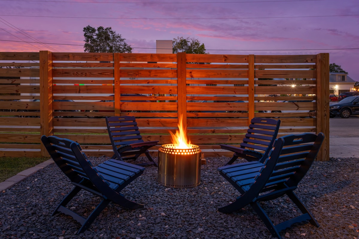 Baby Blue se encuentra a menos de media milla del popular Cargo District, que incluye tiendas locales, restaurantes y entretenimiento. También hay 2 parques de la ciudad dentro del barrio, que está lleno de encanto sureño. El patio trasero es perfecto para personas y mascotas e incluye una valla de privacidad, césped y un porche trasero cubierto. En el interior encontrarás decoración temática de música/Wilmington en todo el bungalow de 2 dormitorios. La cocina completa, la lavandería y el aparcamiento fuera de la calle son perfectos para estancias largas.