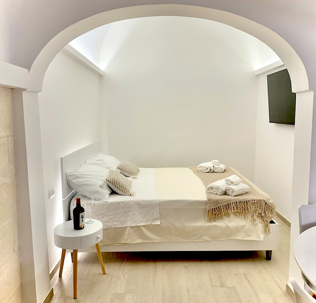 Este alojamiento excepcional , ubicado en un antiguo convento , goza de una ubicación ideal en el centro histórico de Monopoli . Es un lugar refinado donde cada detalle ha sido meticulosamente diseñado respetando la arquitectura y la identidad del edificio en el que se encuentran techos abovedados , paredes de piedra originales. En simbiosis con esta autenticidad, mobiliario de diseño, esculturas y obras de arte aportan a este entorno histórico un toque chic y muy contemporáneo .