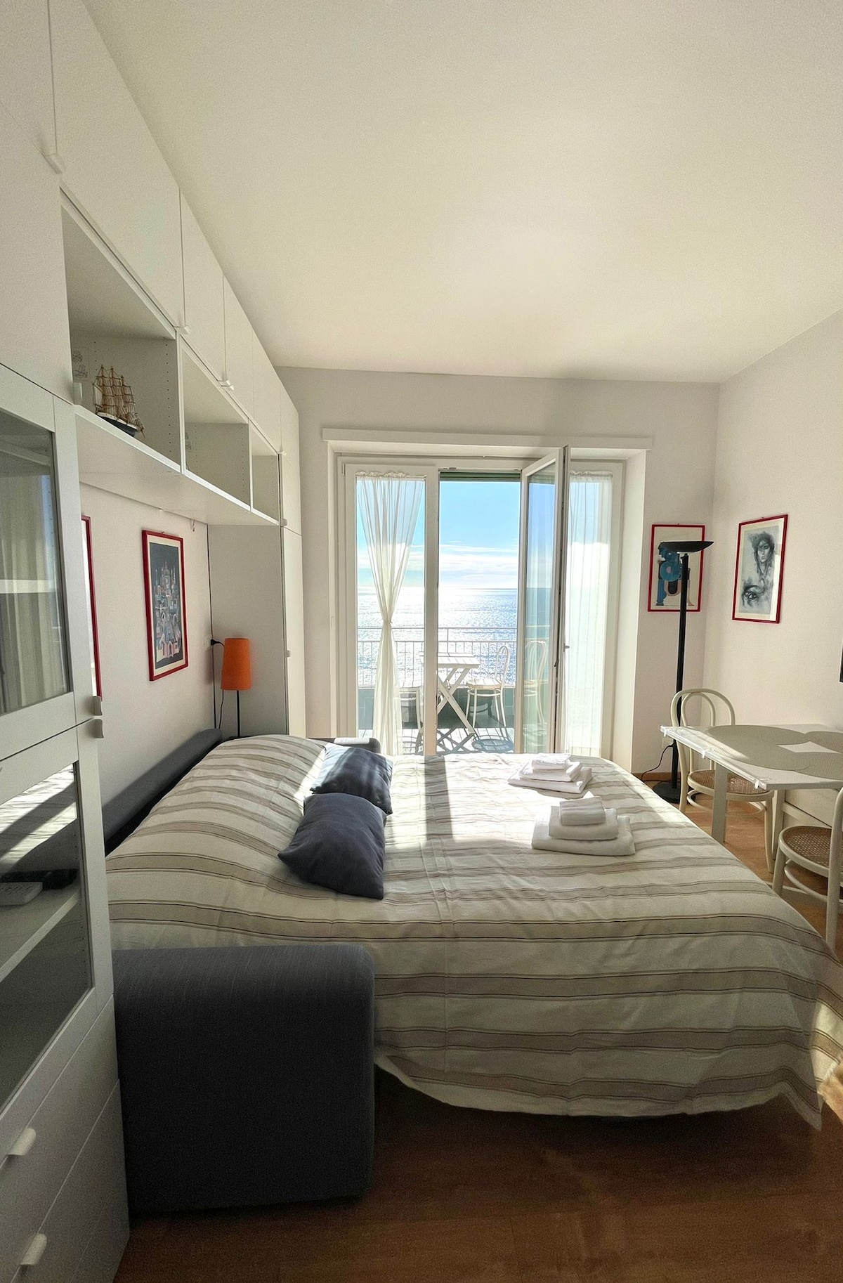 Enjoy a stunning sea-view apartment near the border of Sanremo and Ospedaletti. The beach is just across the street, accessible by elevator or a gentle slope. Wake up to the soothing sound of the waves and breathtaking views. Free municipal parking is available along the road. Carrefour supermarket is 1.2 km away, and Sanremo’s center is 3.5 km. Nearby, you'll find playgrounds, cafés, restaurants, a scenic 39 km bike path, and a dog-friendly beach—perfect for a relaxing Ligurian escape!