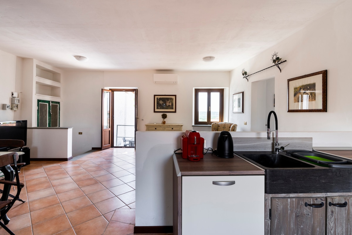 En el corazón de Capriata D'Orba, en las azoteas de un maravilloso edificio del siglo XV, subiendo dos tramos de escaleras, se entra en este nido de amor para dos. El apartamento consta de un gran espacio abierto con cocina, una gran mesa de comedor, un sofá, televisión y aire acondicionado, un amplio dormitorio doble y un cuarto de baño de estilo rústico muy bien cuidado. La terraza te dará la libertad de estar al aire libre con total privacidad, ¡disfrutando de unas vistas impresionantes!