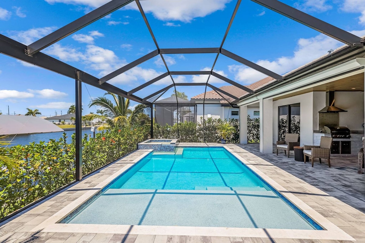 Welcome to "Villa Indian Summer," a modern, two-story newly built home nestled in the highly sought-after Southwest of Cape Coral. This exquisite vacation villa boasts an unparalleled southern panoramic location with captivating views of intersecting canals. The prime location ensures effortless access to everyday conveniences. Essential shopping – groceries, pharmacy, postal services, etc. – can be found less than two miles away at the Camelot Isles Shopping Plaza.